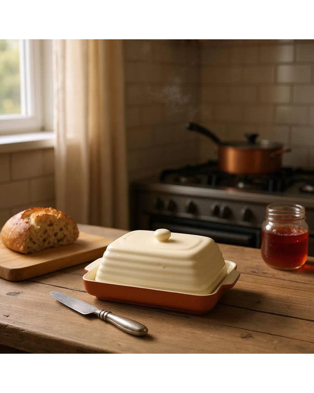This hand glazed terracotta ribbed butter dish brings rustic charm and practical functionality to your kitchen. Designed to keep your butter fresh and easily accessible, it’s both microwave and oven safe for added convenience. Plus, it’s dishwasher safe for effortless cleaning! Perfect for everyday use, this durable butter dish blends classic design with modern practicality, making it a must-have addition to your kitchenware collection.