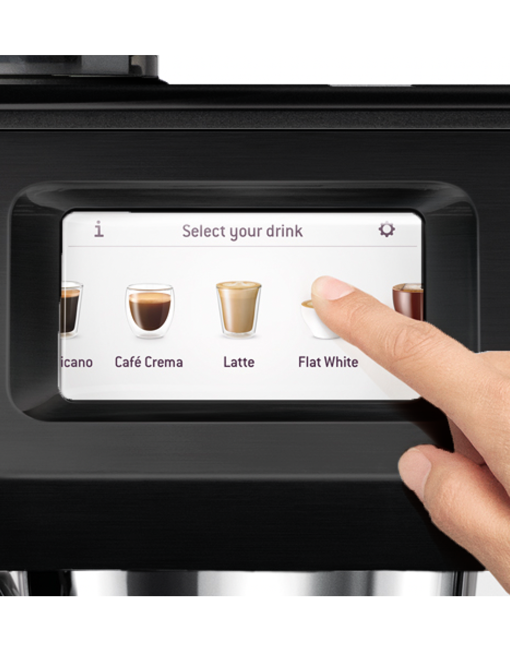 The Sage Oracle Touch Black Truffle Espresso Machine's automated, touch screen operation simplifies how to make your favourite cafe coffee in three easy steps - grind, brew and milk. You can easily adjust the coffee strength, milk texture or temperature to suit your taste. Then save it with your own unique name. Create and save up to 8 personalised coffees.
