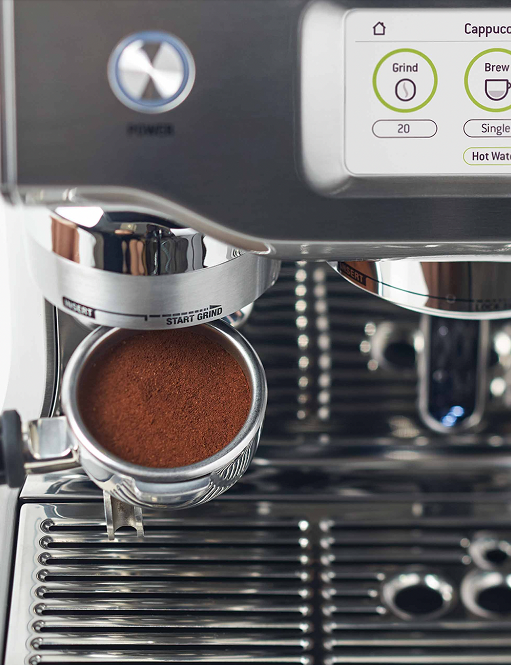 The touch screen allows you to and select for espresso, long black, latte, flat white or cappuccino and enjoy café quality coffee at home. The integrated conical burr grinder automatically grinds, doses and tamps 22 grams of coffee, similar to the commercial machine in your favorite cafe. It comes with dual boilers, which means it has one for the espresso and one for the milk. This allows you to brew and texture milk at the same time. You can easily adjust the coffee strength, milk texture or temperature to suit your taste and then save it under 8 personalized coffee settings.