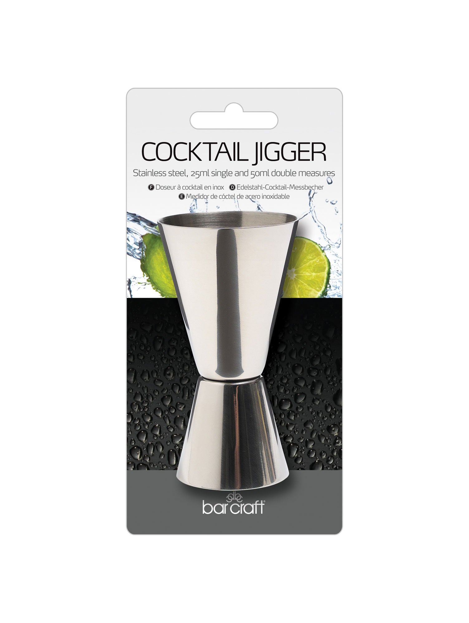 Here we have a BarCraft Stainless Steel Jigger Dual Cup from Kitchen Craft. Ideal for measuring spirits for cocktails and mixes. Perfect to measure a single (25ml) and double (50ml) unit.