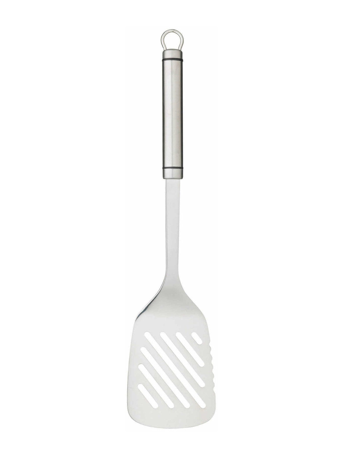 Here is the Oval Handled Professional Stainless Steel Slotted Turner from Kitchen Craft. A high quality stainless steel slotted turner, with a comfortable oval shaped handle and integral hanging storage loop.