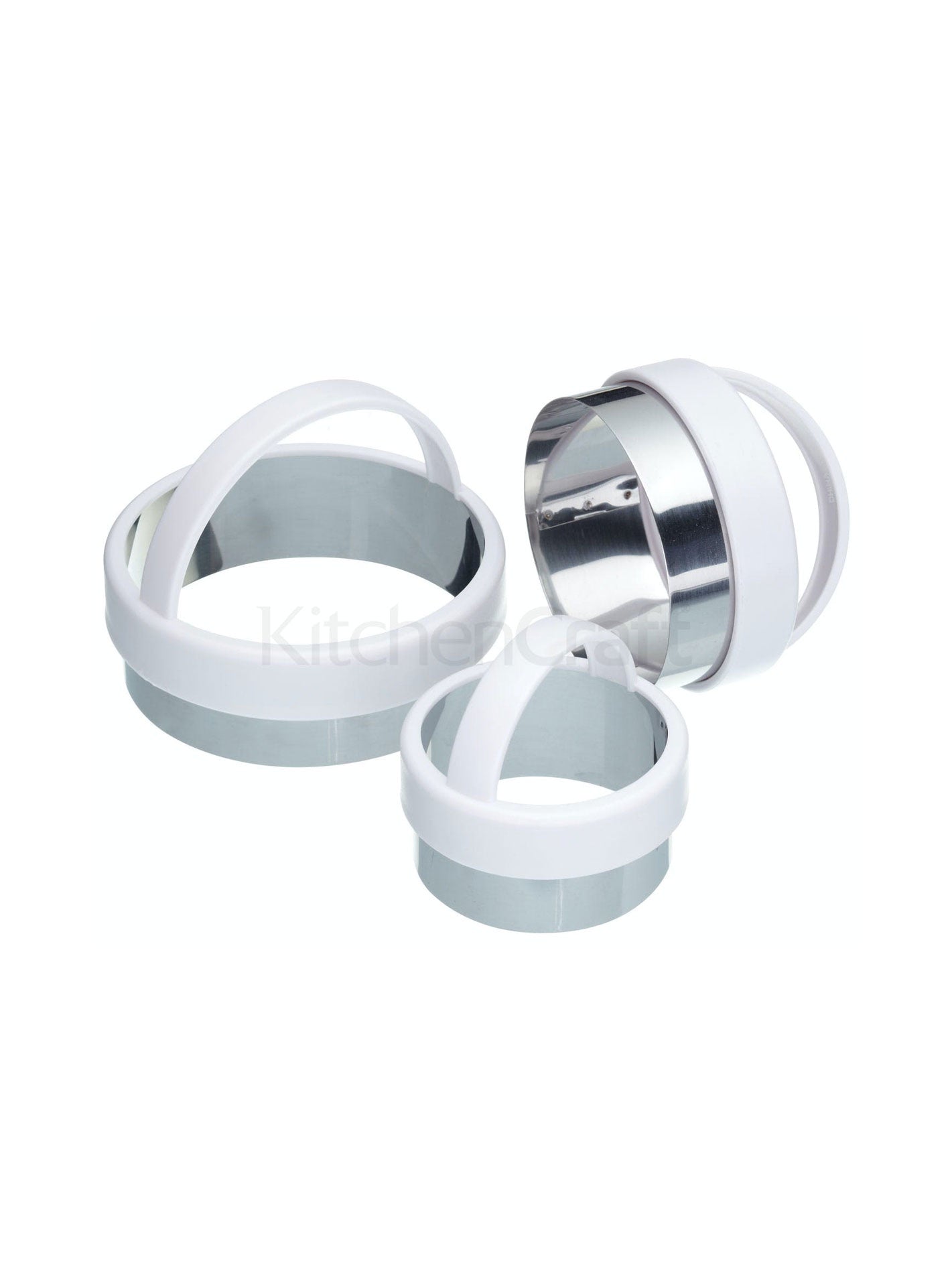 Here you’re looking at the Set of Three Plain Pastry Cutters from Kitchen Craft. Ideal for making jam tarts, mince pies, pastries, canapés, scones, and cookies, this set of three plain edged pastry cutters has stainless steel blades and plastic half-moon handles for comfortable and controlled use. The set includes 5cm, 6cm and 7cm size cutters that nest together for easy storage.