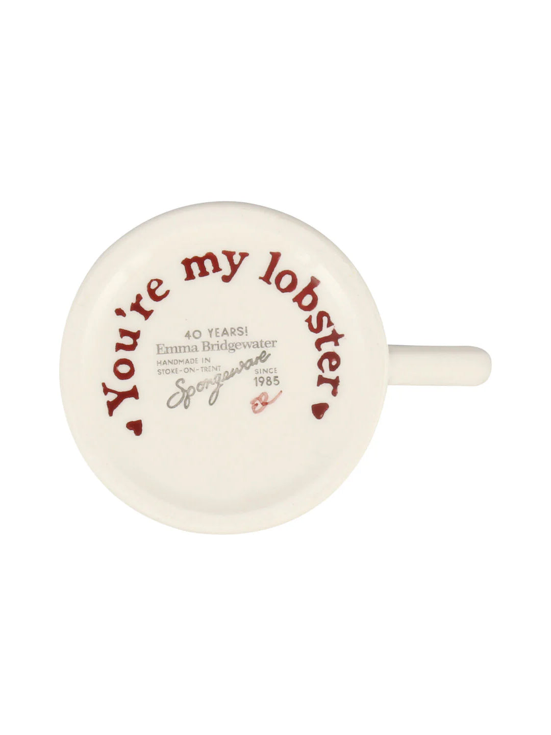 It’s a known fact, isn’t it, that lobsters fall in love and mate for life? So let your lobster know how much you love them and that they’re your lob-star by giving them a Lobster 1/2 Pint Mug for a Valentine’s Day present. Or, if you’re looking to drop someone a romantic hint and know their address, we can send this hand-decorated mug within three to five working days to the person you’re cray-sea about.