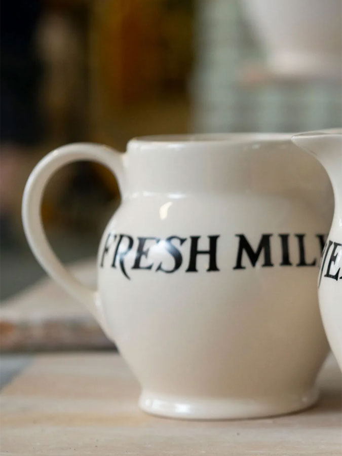 Here we have the Black Toast Jersey Cream 1/2 Pint Jug from Emma Bridgewater. An elegant monotone jug perfect for pouring. Decorated with the words fresh milk on one side and jersey cream on the other, this 100% English earthenware jug is also suitable for the dishwasher making clean-up a breeze!