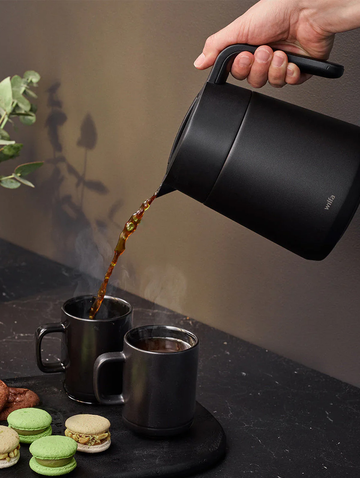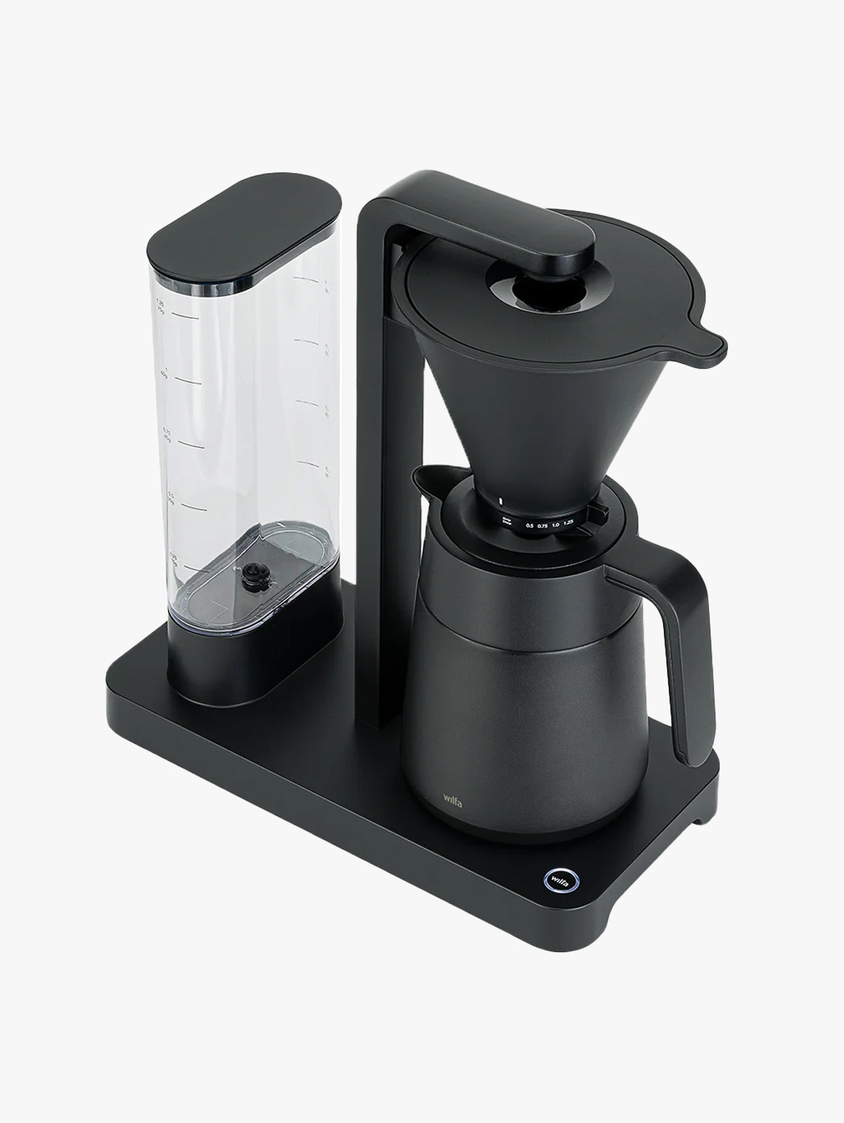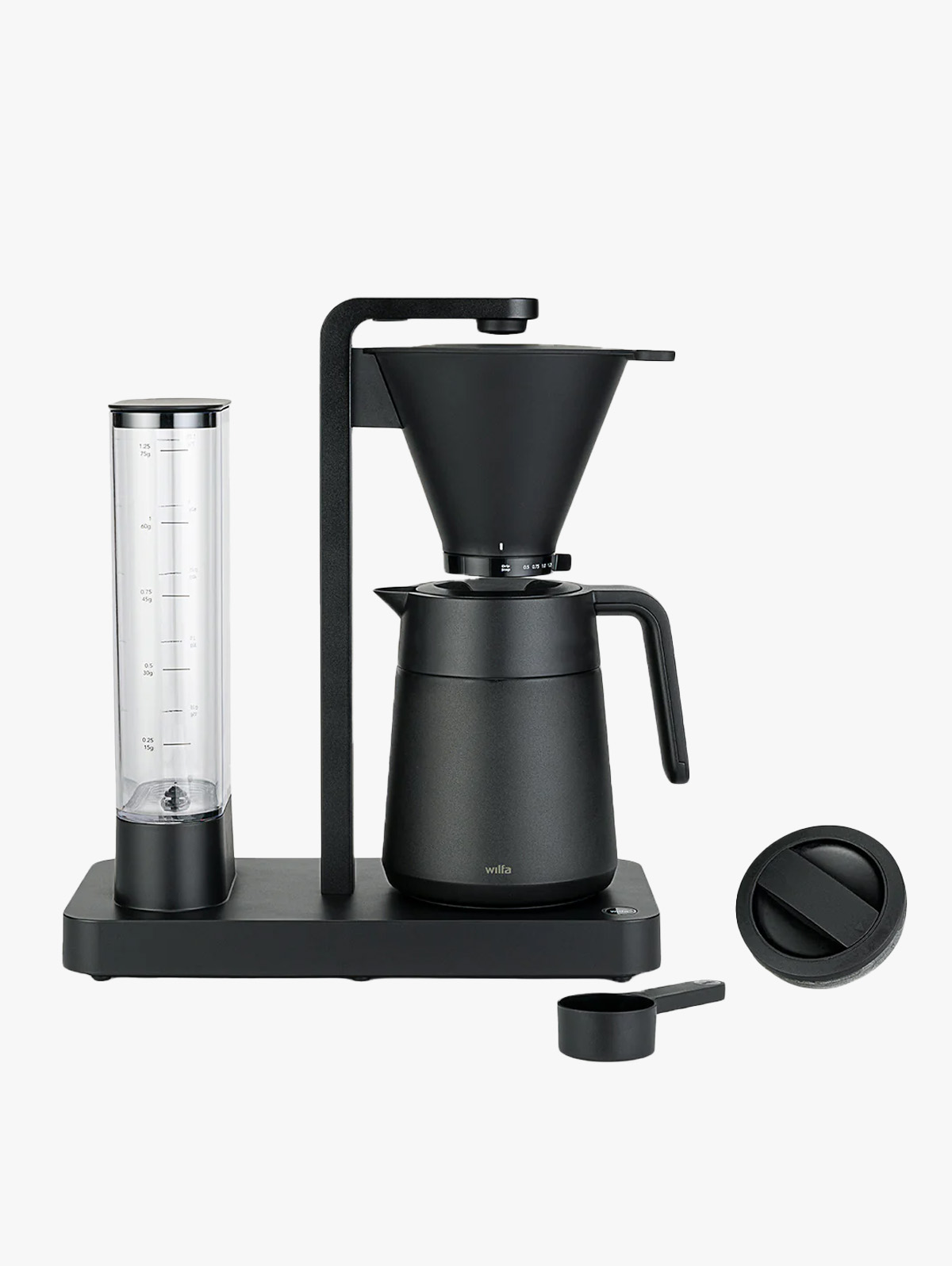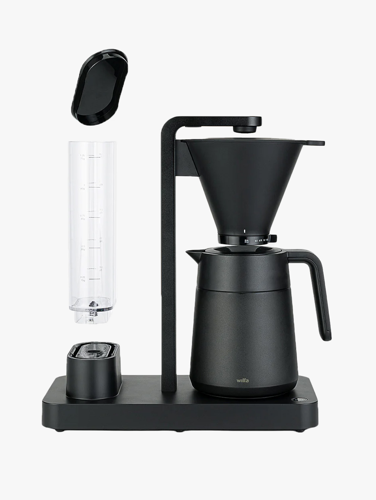 This is the Wilfa Performance Thermo Coffee Maker. Advanced technology guarantees perfect brewing temperature from the first to the last drop. Developed in Norway, in collaboration with barista world leaders.Unlike most other coffee makers, Wilfa Svart Performance Coffee Maker keeps between 92 and 96 degrees from the first to the last drop. The pump completely empties the hopper of water at each brewing, therefore there will always be fresh clean water when brewing. With a removable water tank that you can fill directly into, you'll always have fresh, clean water for great tasting coffee. An adjustable drip stop to set how much coffee you brew, and give you perfect coffee no matter the amount.