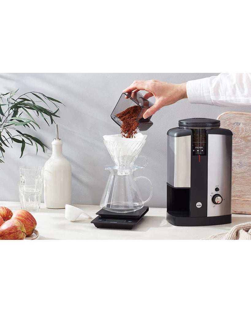 With an easy-to-use interface, you’ll find no trouble make a professional-tasting brew, either at home or in a professional cafe environment using the Wilfa Svart Aroma Precision Coffee Grinder. Made of polycarbonate and steel, with steel conical burrs and a detachable 250g hopper, this quality Wilfa coffee grinder is a portable and modern companion to any coffee connoisseur’s daily coffee routine.