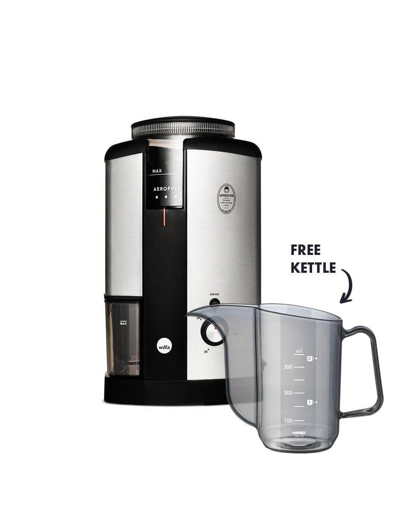Wilfa Svart Coffee Grinder (Silver) + Hario Drip Kettle Air