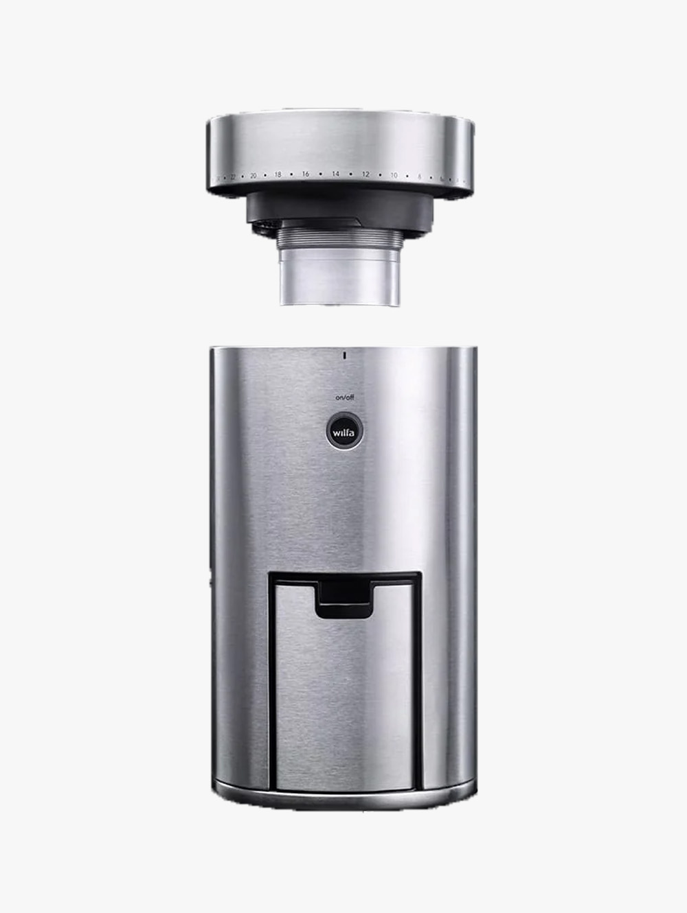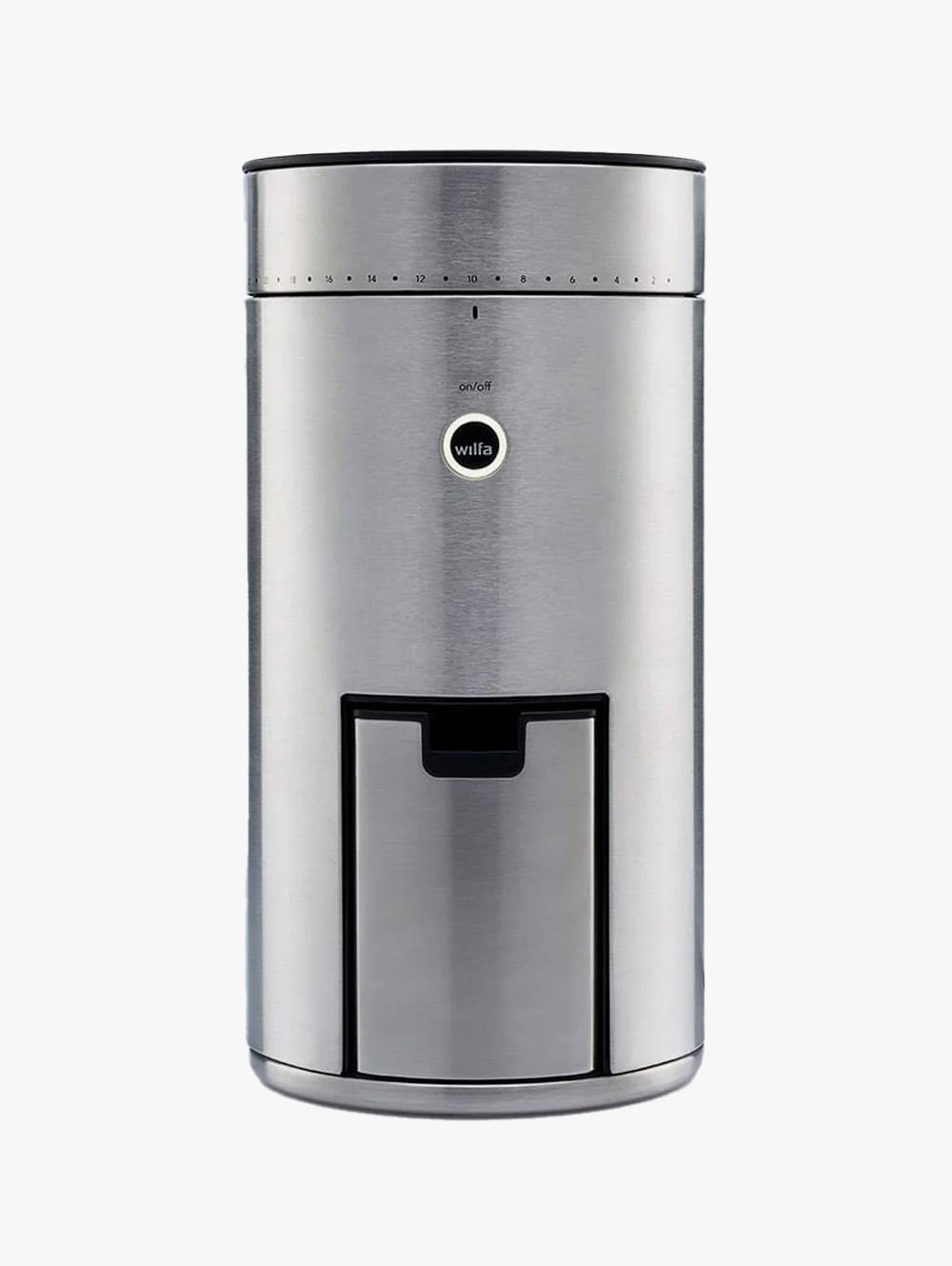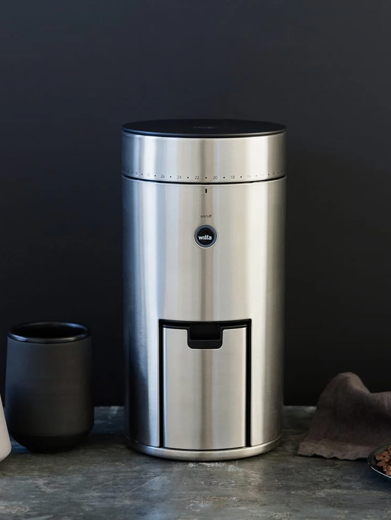 You're looking at the Wilfa Uniform Coffee Grinder. Featuring 58mm stainless steel, stabilised flat burrs for a more precise grind and an even extraction. Boasting 41 grind settings from espresso to steep, and a clever auto-off function once the beans have passed through. The slow motor ensures your coffee beans won’t be heated, so you and your guests can enjoy great tasting coffee. The Norwegian-designed grinder features a stylish minimal and modern design with its understated Scandinavian elegance, and looks great in any setting.